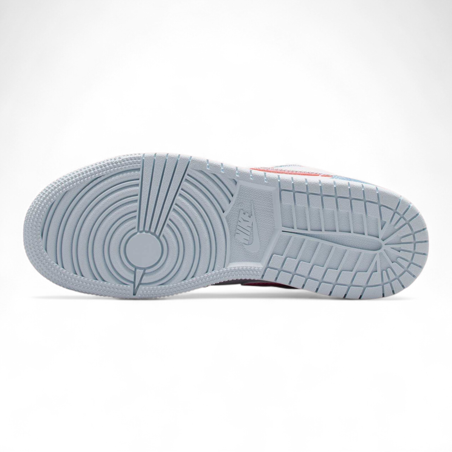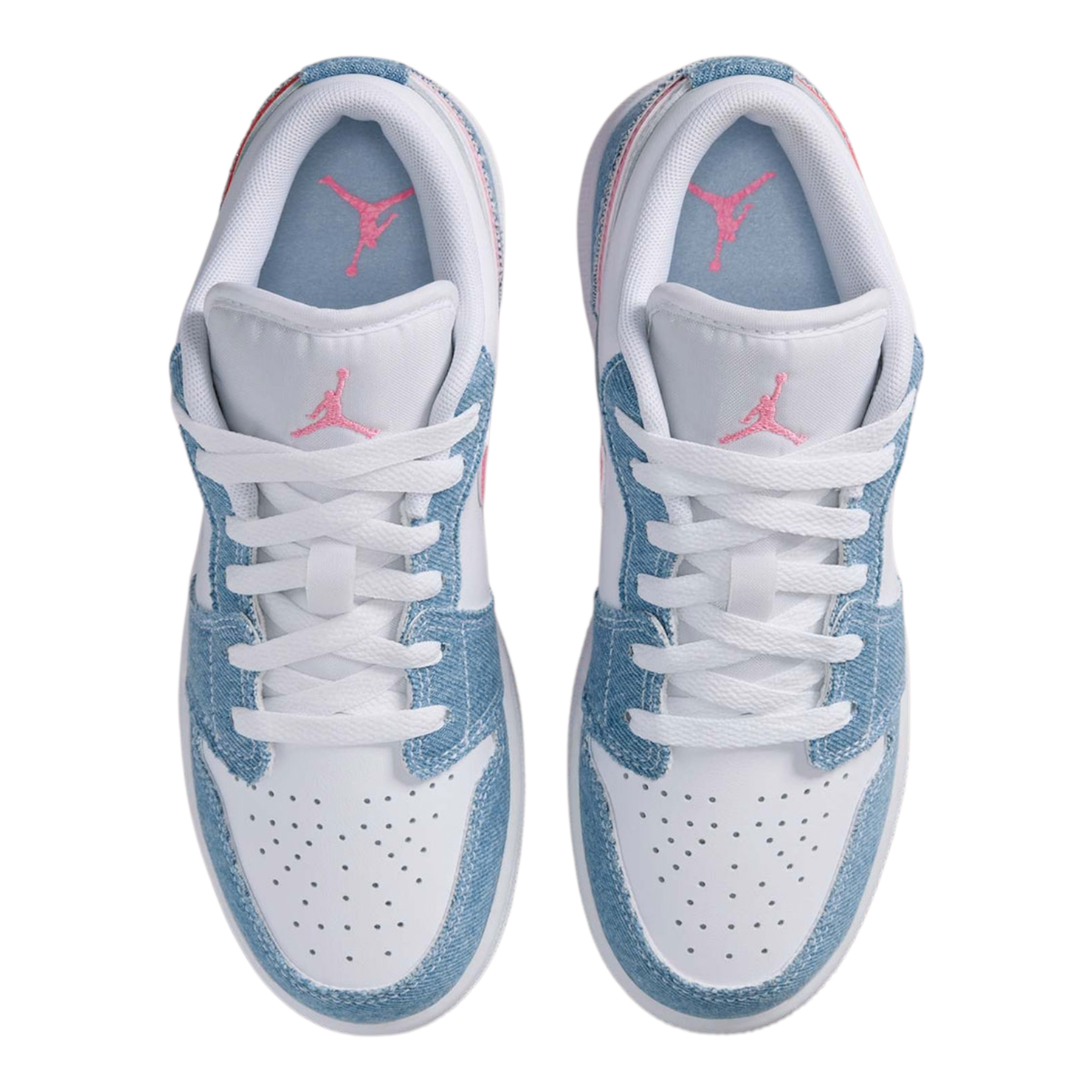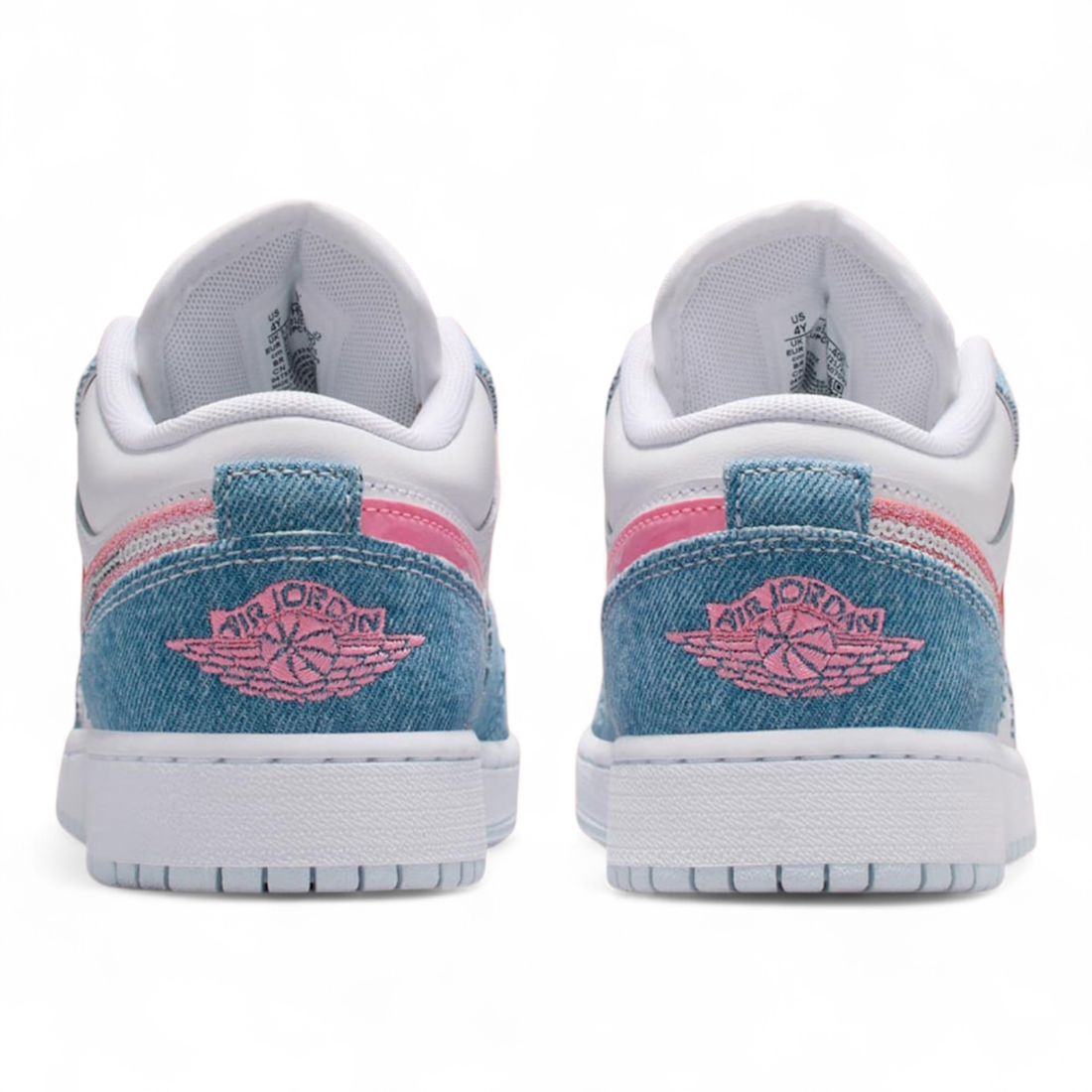The Air Jordan 1 Low Denim features a clean low-top silhouette with a mix of smooth leather