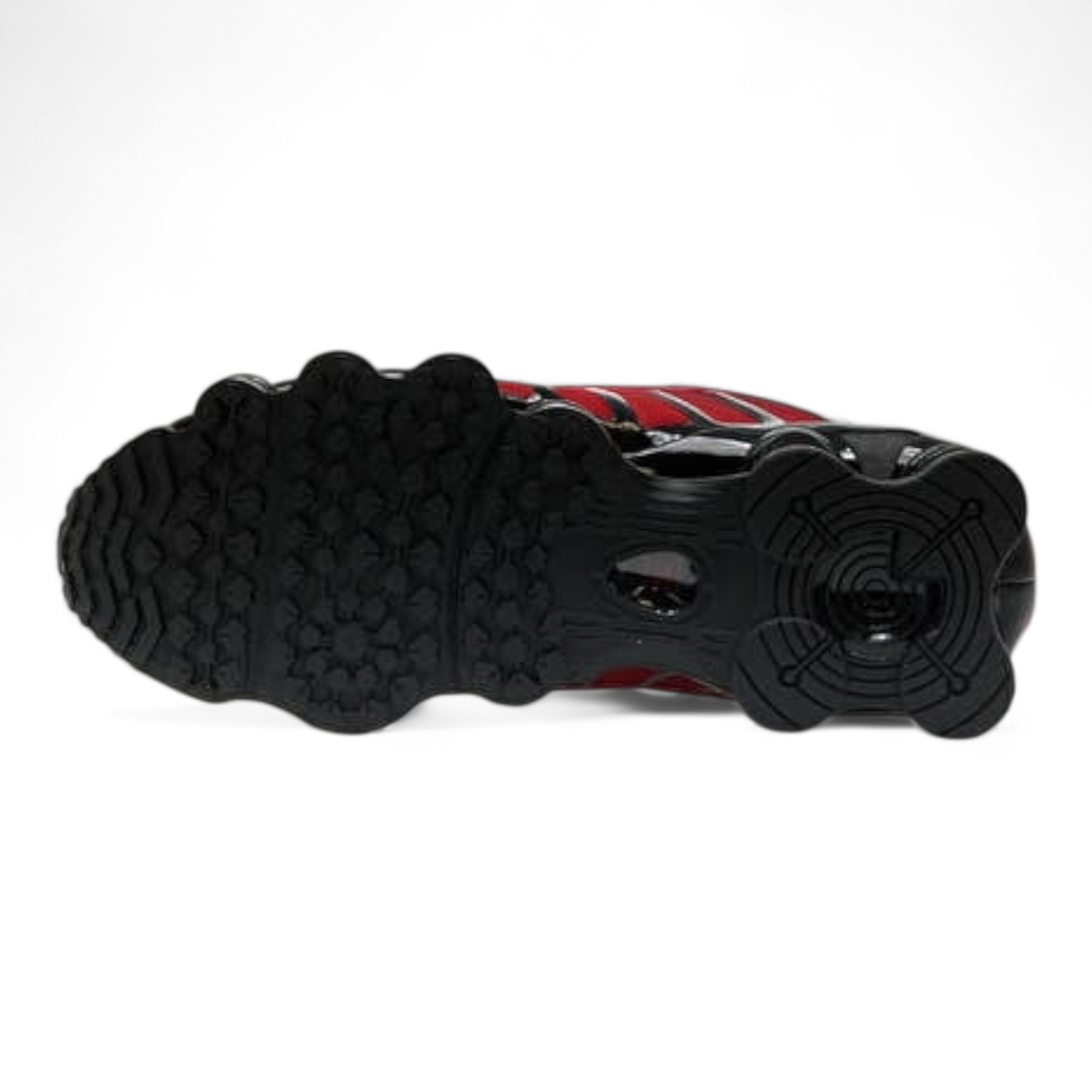 A defining element of the design is the full-length Shox cushioning system, delivering responsive shock absorption and a distinctive look underfoot. The padded collar and cushioned insole enhance comfort, while the durable rubber outsole ensures reliable traction on urban surfaces.